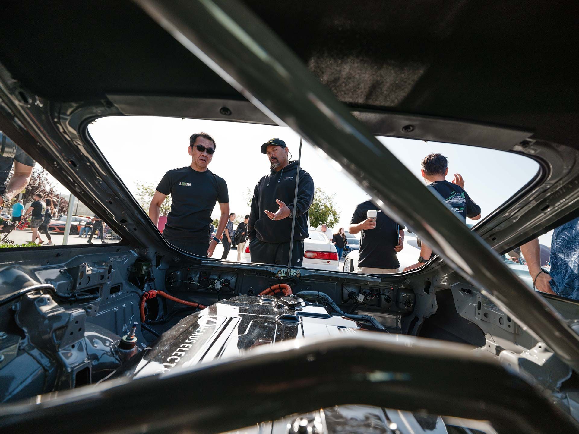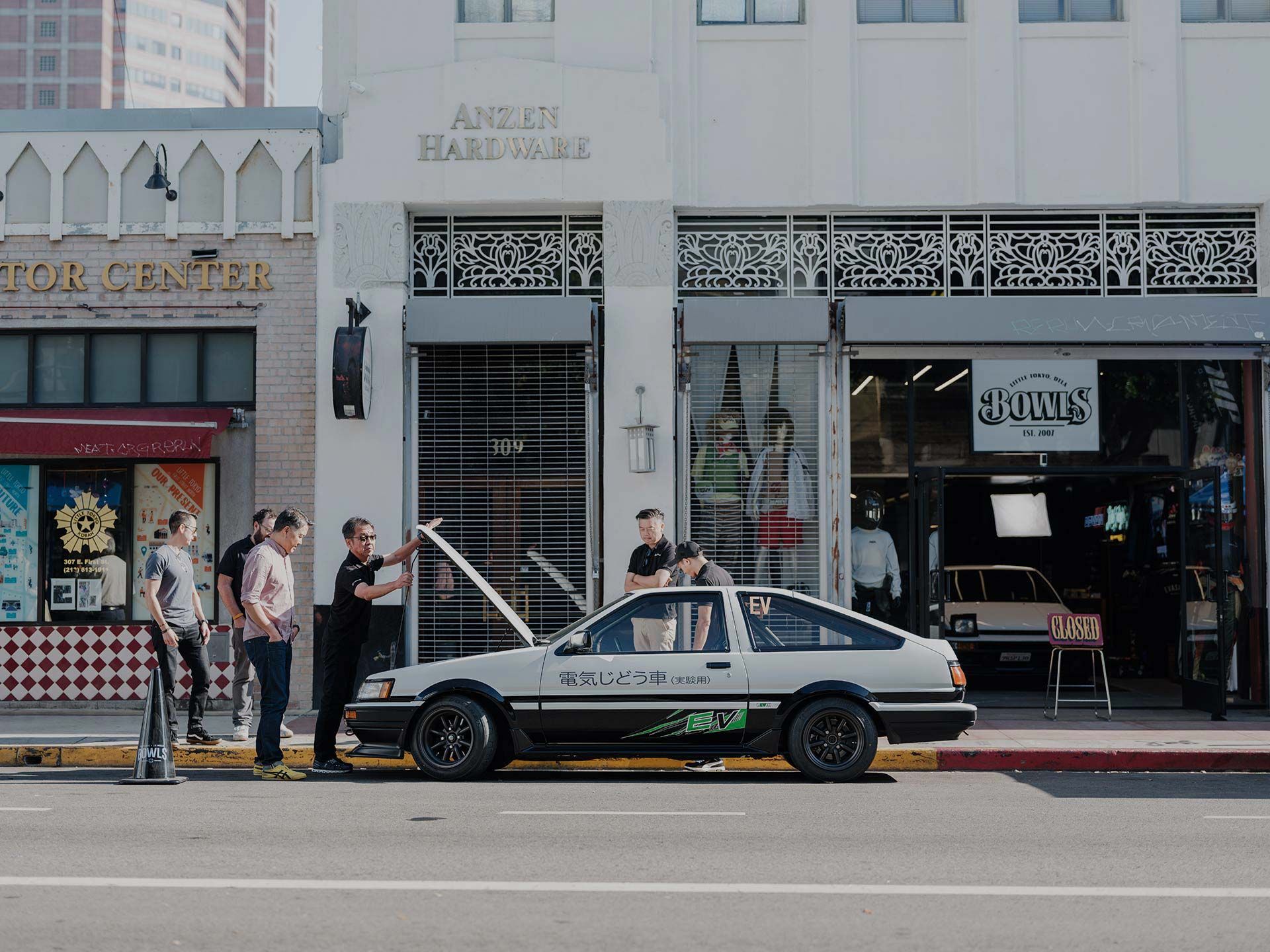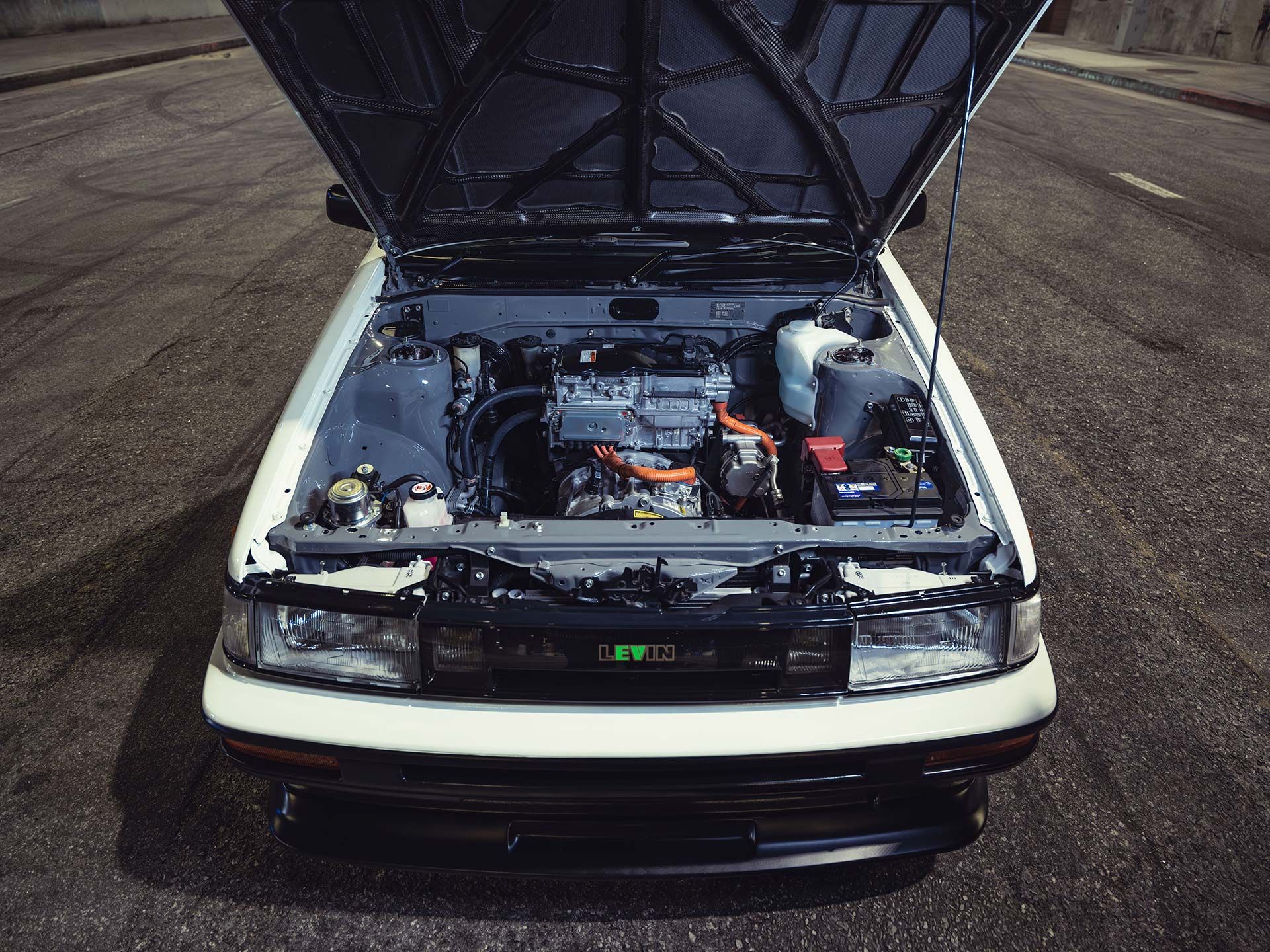 Lexus International’s solution came in the form of a 95-kilowatt, all-electric two-door hatchback whose original chassis, body, and charisma originated in the 1980s. After internal deliberation, it was decided the globally renowned AE86 Corolla Levin would be an ideal foundation from which Lexus could express its commitment to the innovation of electrified tech and human-centered driving enjoyment. (As a bonus, Levin had “EV” in it, and the archaic English definition of the word meant “lightning”). The hatchback’s cult-like admiration made it an easy pick; so too did its relatively simple specification – front- engine, rear-wheel drive, lightweight, compact dimensions – which exemplified the archetype of a proper driver’s car.